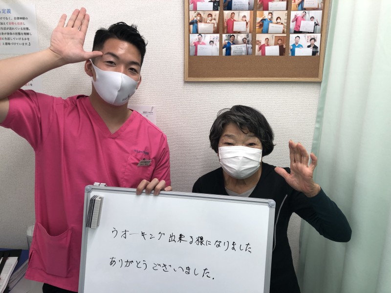 Q、あなたと同じような症状でお悩みの皆様へメッセージがありましたら教えてください。 A、施術だけではなく、運動も大事だと思った。