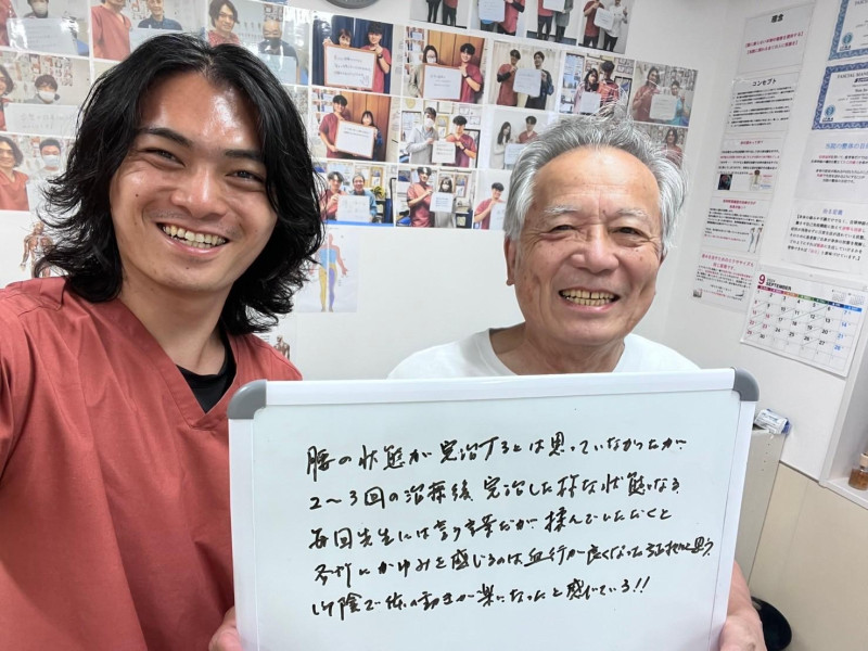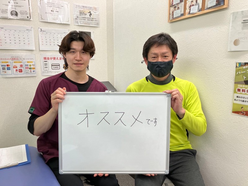 Q、なぜ私を選んだのか。私の施術を一言で。 A、自宅近くであったため。とてもピンポイントな施術で的確です!!