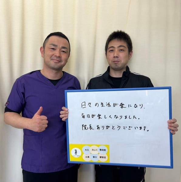Q、あなたと同じような症状でお悩みの皆様へメッセージがありましたら教えてください。 A、正直施術料には驚きましたが確実に良くなります!一歩踏み出してみてください!