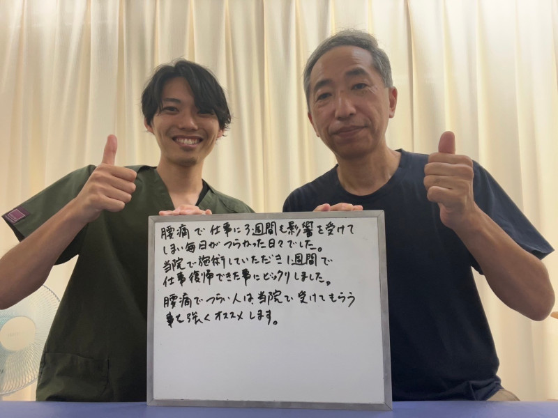 「腰の痛みが楽になり、仕事に集中できるようになりました。」