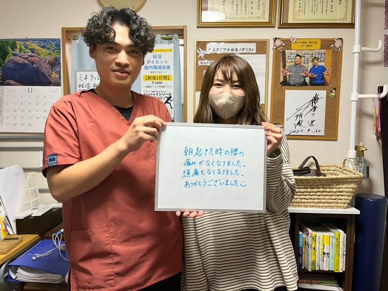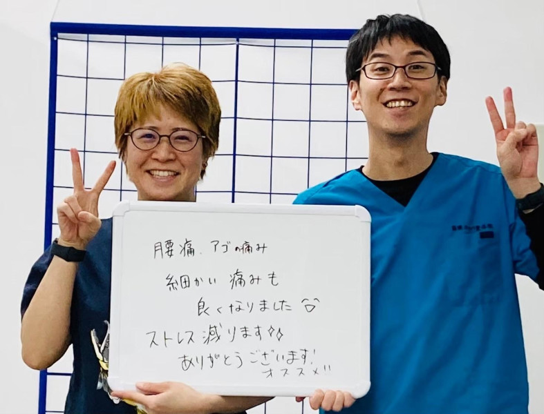 「腰痛、顎の痛み、細かい痛みも良くなりました!!」