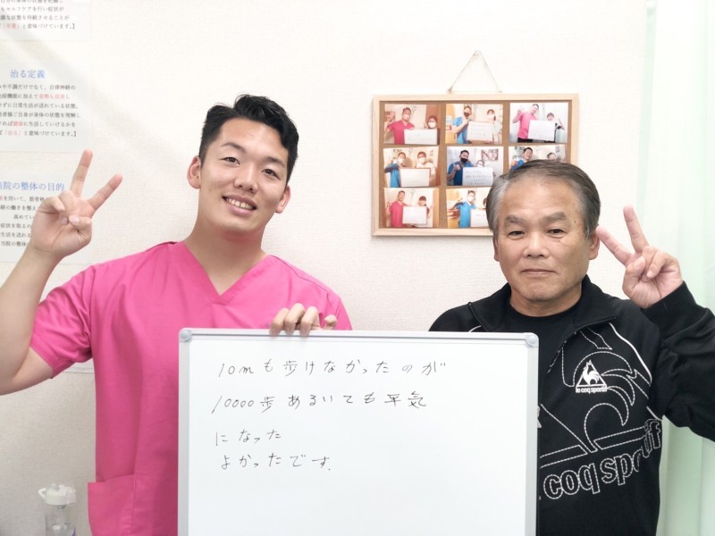 「孫と散歩できるようになりました!!」 Q、以前のお体はどのような状態でしたか。 A、長い時間立っていると辛い。特に腰。歩くと足先や足首が痛い。
