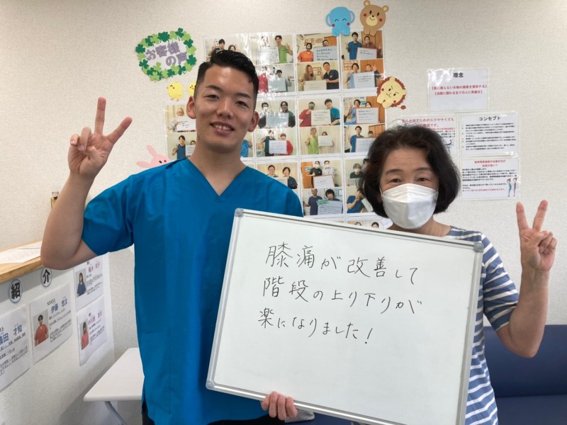 Q、症状の改善などどのような変化がありましたか。 A、動きやすくなった。 Q、お店やスタッフの雰囲気はいかがでしたか。 A、話しやすくて良い。